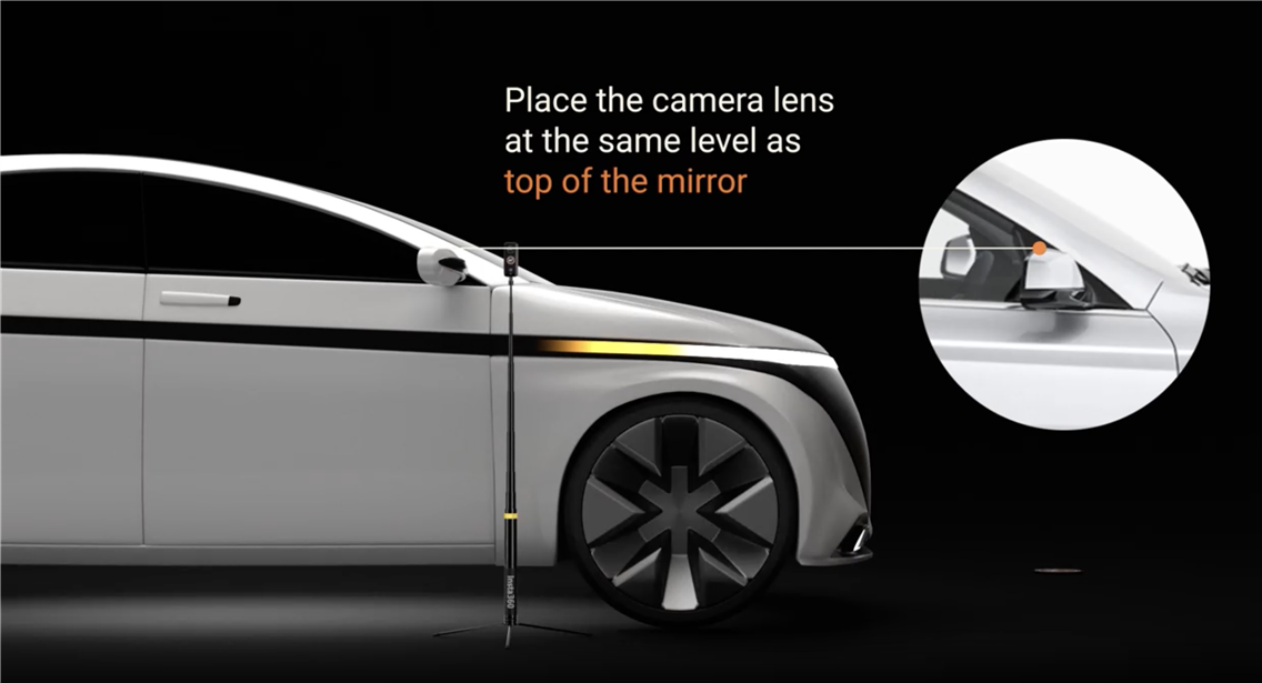 Be mindful of reflections shown on glossy surfaces, mirrors, and windows while taking a shot. Stand behind or away from the camera, duck out of view for interior panos, or position yourself on the opposite side of the vehicle during engine or trunk shots to stay hidden.